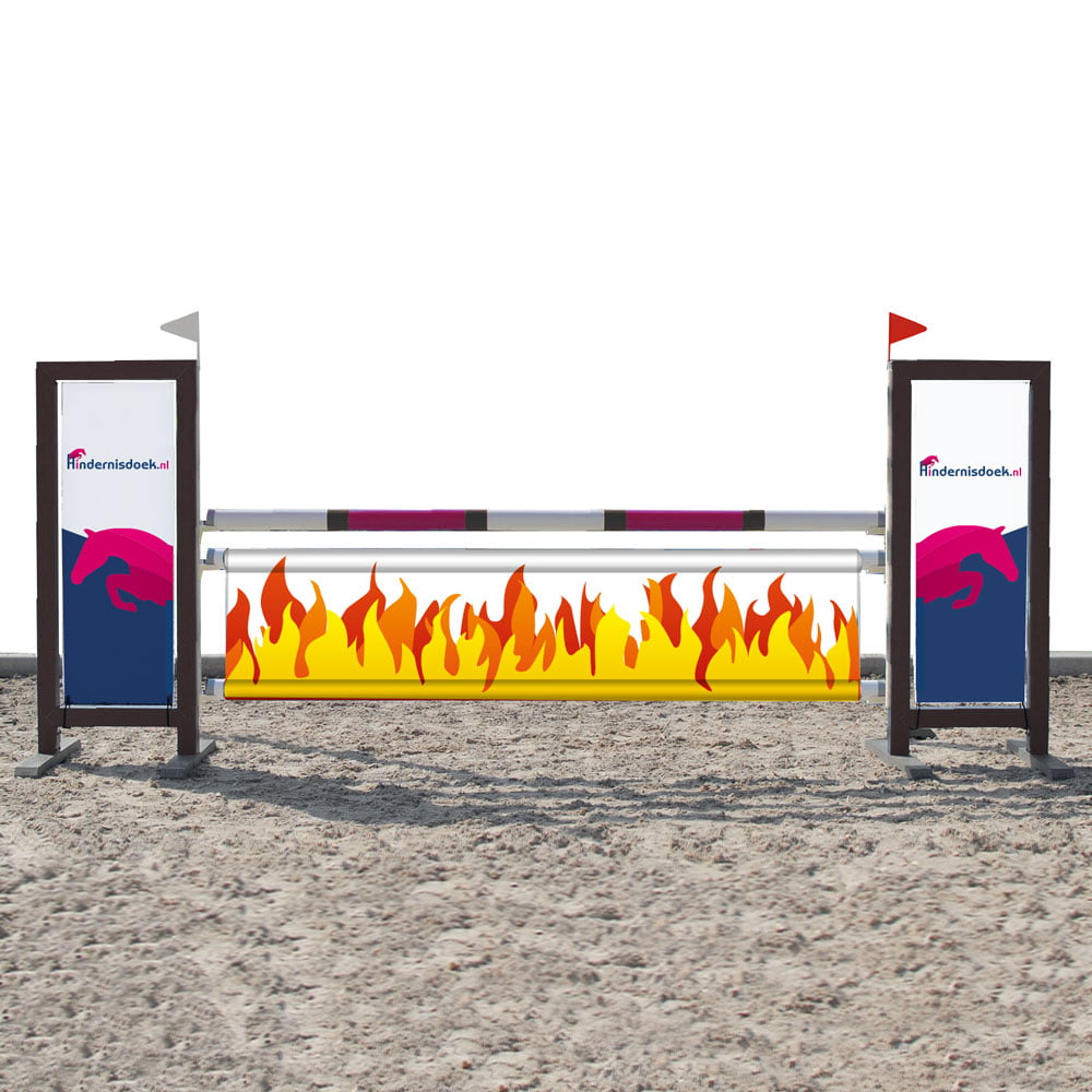 Dit hindernisdoek met vlammen is voor de echte waaghalzen. Zie jij je hier al met je paard of pony over heen springen?